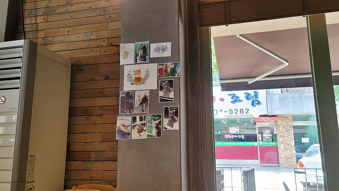 벽에 고양이 사진이랑 그림이랑 가득 붙어있었는데요 정말 귀엽지 않나요? 사실 저 고양이 그냥 줄 없이 그냥 풀어져 있는것 같은데 말이죠. 제가 대화역에서 본 적이 있던 것도 같아서..또 보고 싶었는데 이 날은 고양이가 부재중이었습니다.