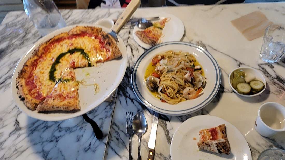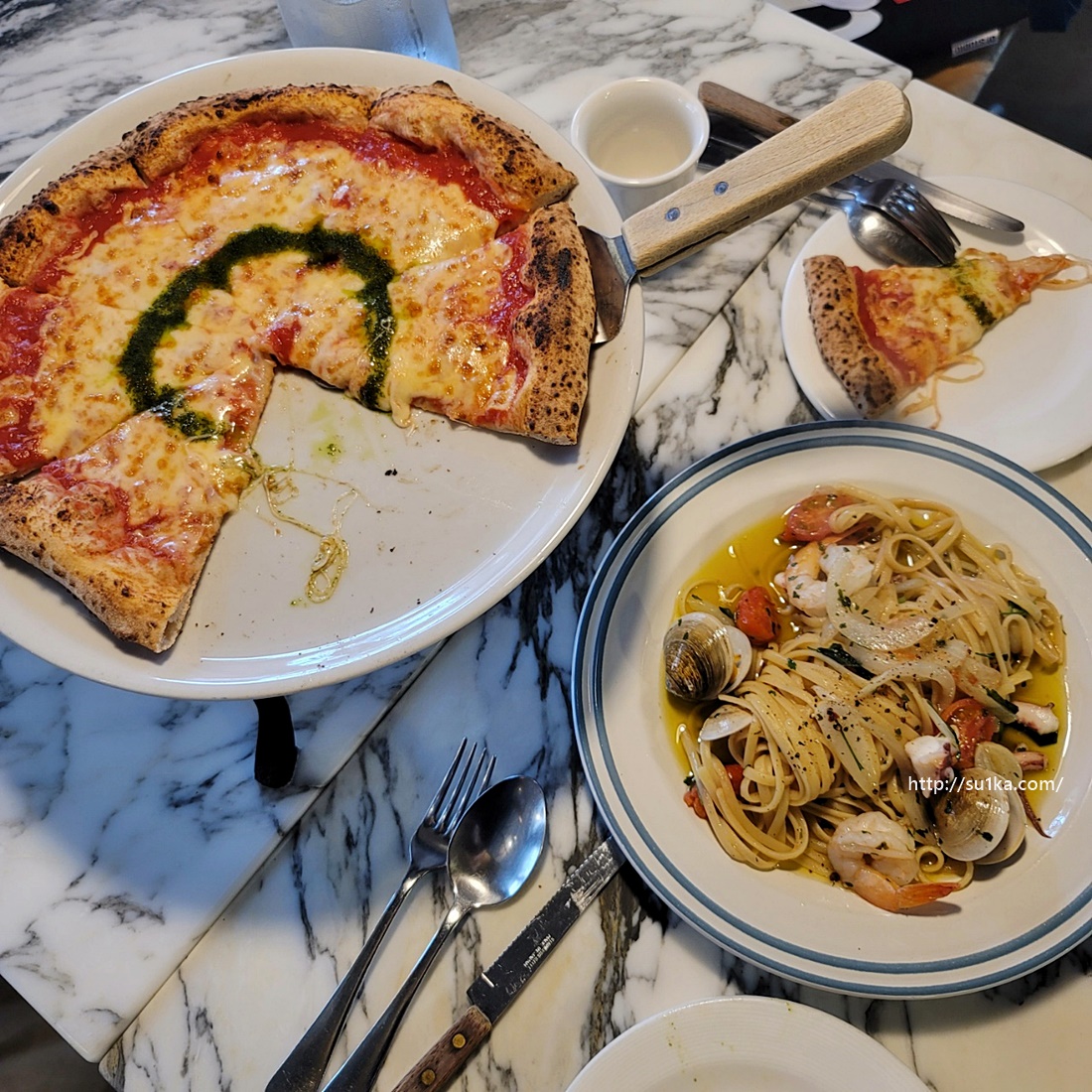 마르게리따 피자와, 해산물 오일 파스타를 주문해 보았습니다.