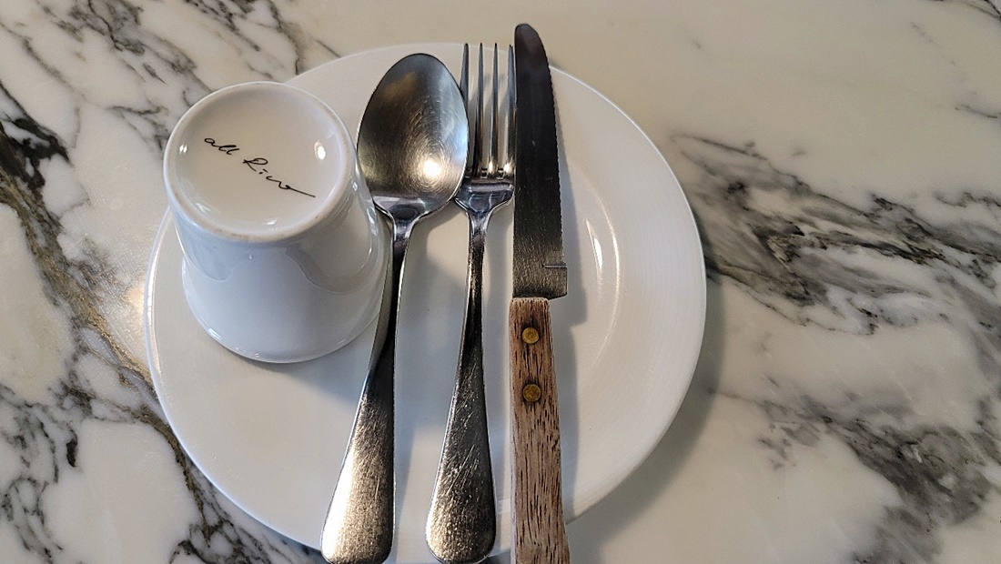 대리석 식탁과 가지런히 놓여있는 수저~
