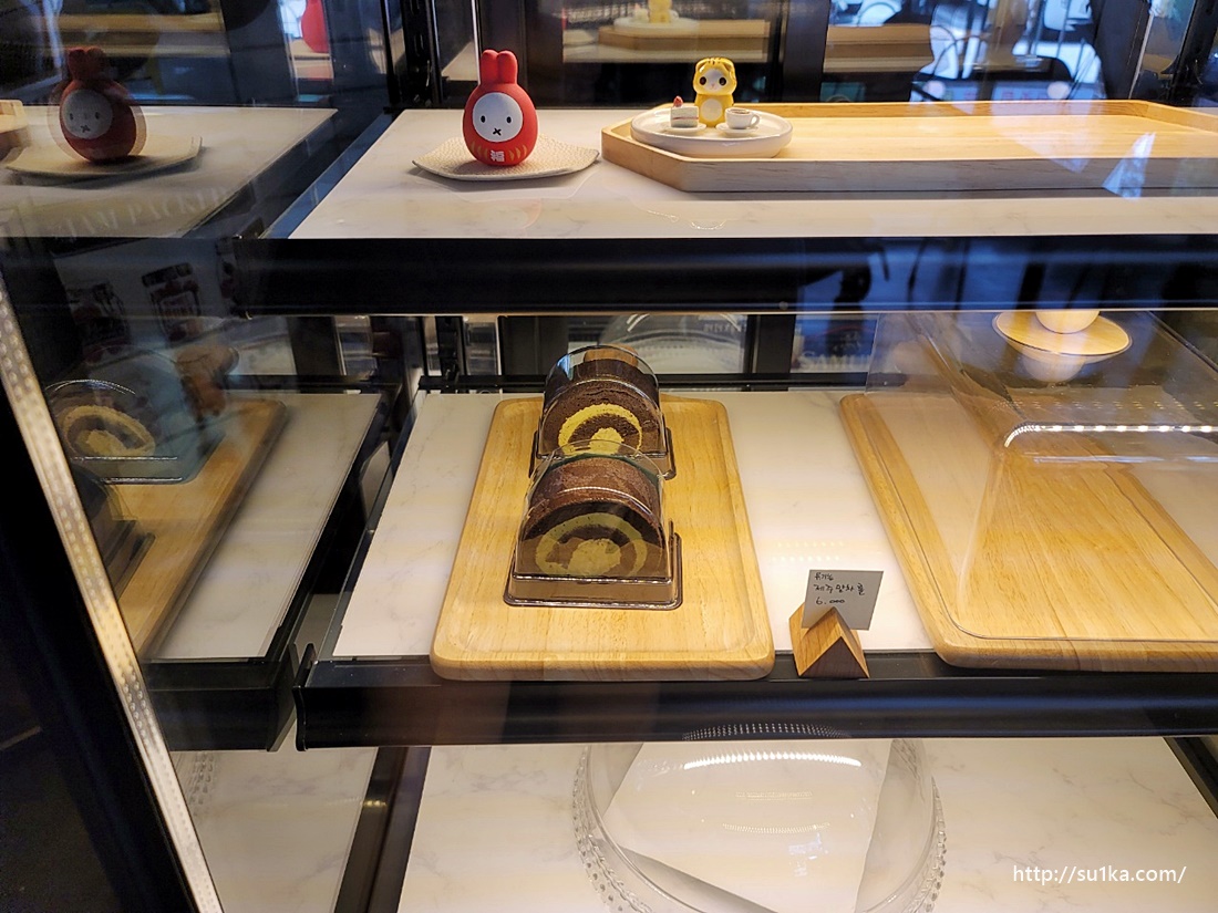 와~ 정말 단면부터 예술이네요. 살짝 케이크가 높았는데요 케이크 위에 발라져 있는 크림이 엄청나더라고요.. 따로 카페를 안 가도 될 정도예요