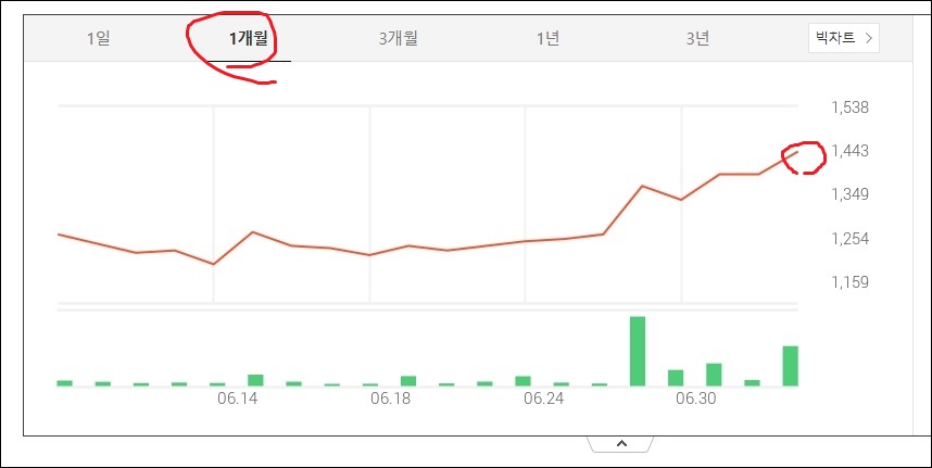 에이비프로바이오 주가는 1개월동안 꾸준히 상승하는 모습을 보여주며 가격은 천원대 초반에서 중반으로까지 올라온 것으로 보여집니다.
