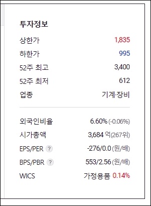 또한 에이비프로바이오의 EPS/PER은 -276/0.0(원/배)이며 BPS/PBR은 553/2.56(원/배) , WICS는 0.14%입니다.