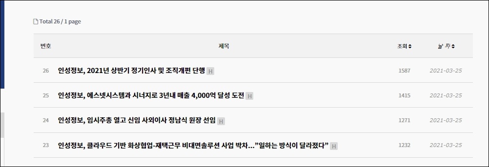 2021년 3월 25일 인성정보 임시주총이 열렸으며 신임 사외이자로 정남식 원장이 선임되었다고 합니다. 또한 에스넷시스템과 시너지를 낼 것으로 확인이 되었으며 3년 내로 매출 4000억 달성을 하겠다는 포부를 내비쳤습니다. 2021년 3월 25일 자로 상반기 정기인사 및 조직개편을 단행하겠다는 내용 또한 인성정보 홈페이지에서 알아볼 수 있었습니다.