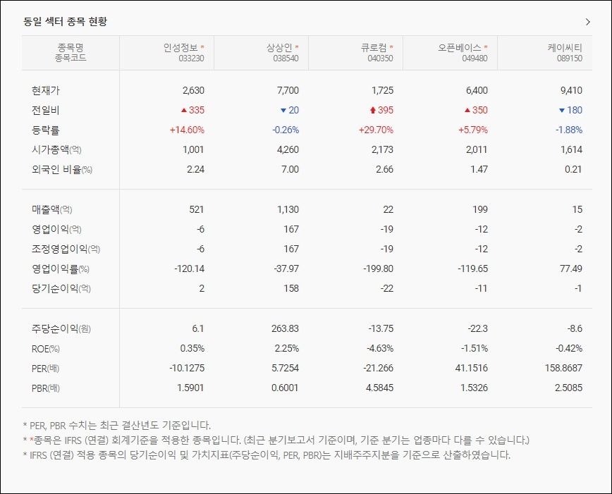 상상인과 큐로컴, 오픈베이스와 케이씨티 등의 주가와 등락률, 회사 재무 관련 사항을 같이 살펴보시길 바랍니다.