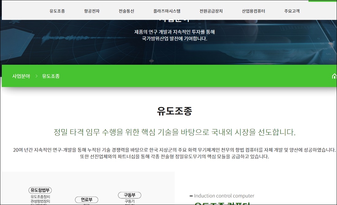 또한 회사는 국가방위산업 발전에도 일조하고 있다고 하는데요, 유도조종 등에 관련한 것으로 화력 기술을 가지고 있는 것으로 보여집니다.