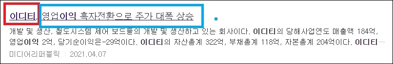 또한 이디티는 2012년 4월 7일 자 미디어리퍼블릭 뉴스에 따르면 영업이익이 흑자전환을 했다고 합니다.
