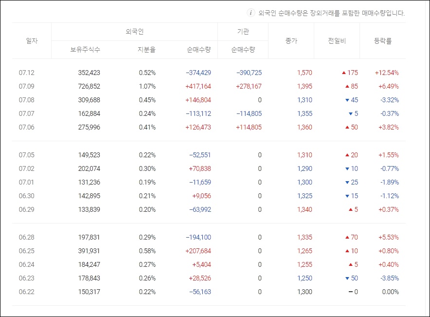 이디티는 외국인 지분율이 6월 22일 기준 0.22%였으며 7월 12일은 0.52%로 증가하였습니다.