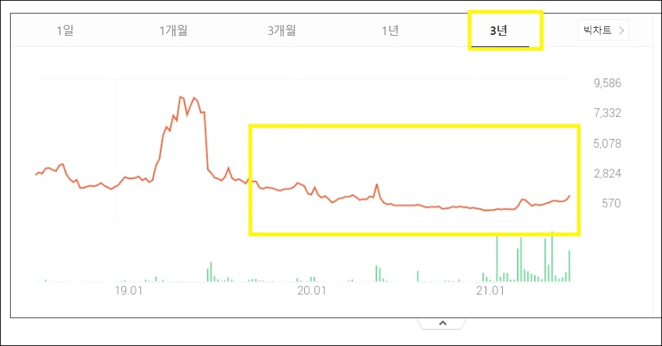 하지만 7천 원 이상을 호가했던 주가가 동전주로까지 떨어졌던 것으로 확인되며 최저점은 넘었지만 이전 고점치를 회복하지는 못하였습니다.