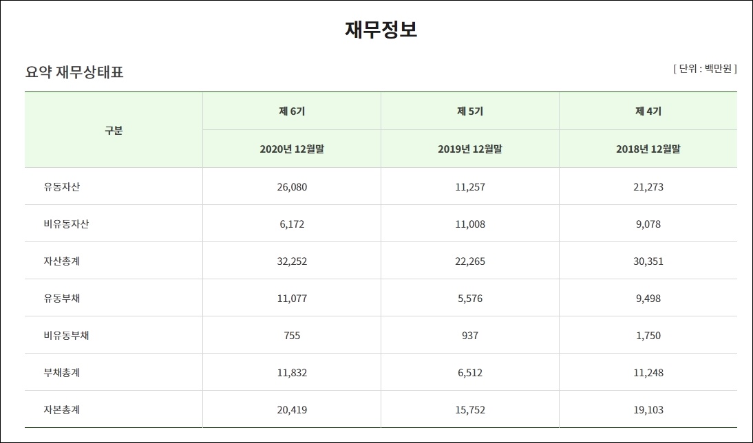 이디티의 요약 재무상태표입니다. 제6기 유동자산이 5기에 비해 증가한 26,080(단위:백만 원) 원으로 보이며 5기와 4기와 비교하셔서 재무 상태를 분석할 수 있습니다.