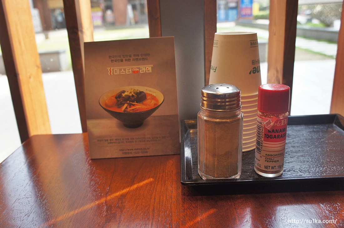 식탁에 시치미랑 후추같은것이 놓여져 있는데요 딱히 뿌려먹지 않았습니다. 간이 딱 맞아요.