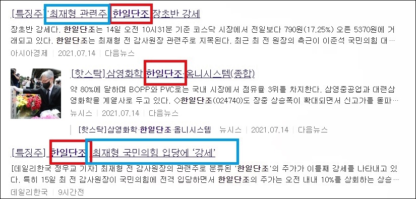 한일단조는 최재형 관련주로 뽑혀서 주가가 강세를 보인 적이 있습니다.
