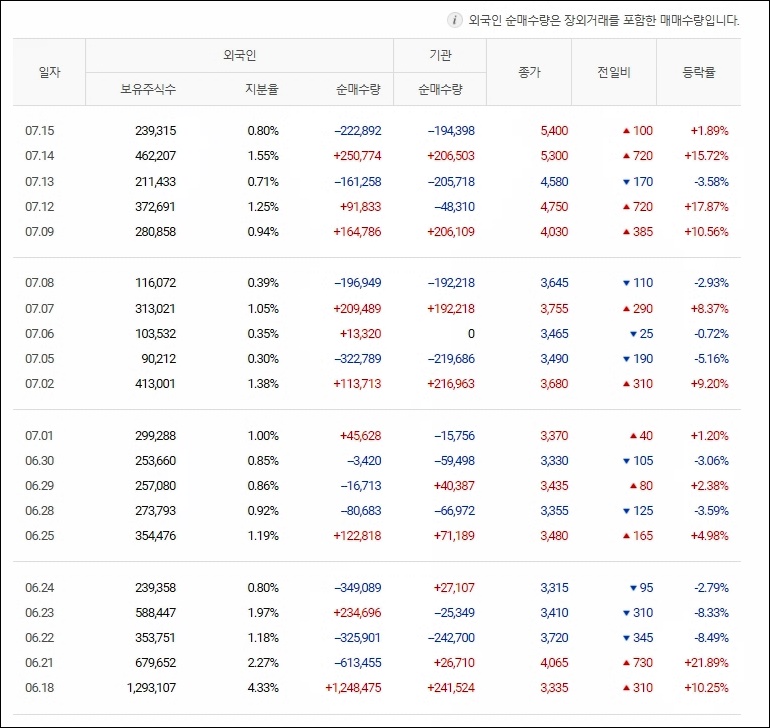 외인비중은 6월 18일 4.33%에서 현재 1%미만으로 떨어진 상태입니다.