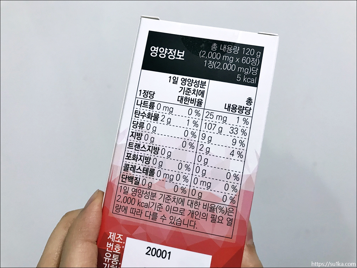 일단 칼로리를 보면 1정당 5kcal이니 섭취하기에 부담스러운 것은 아닙니다.