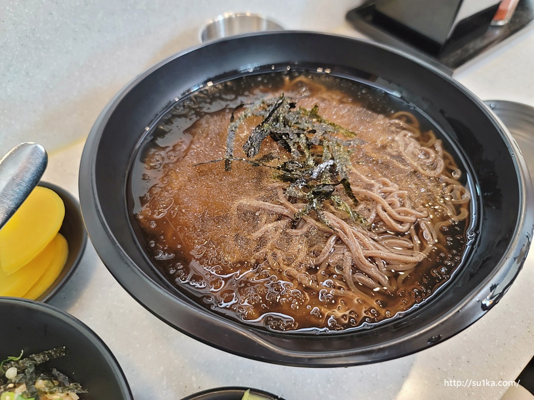 모밀은 간무와 와사비를 넣어줘야 제맛인데요 와사비 안 넣고 먹으면 약간...평양냉면 먹는것 같기도 해요.