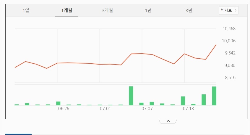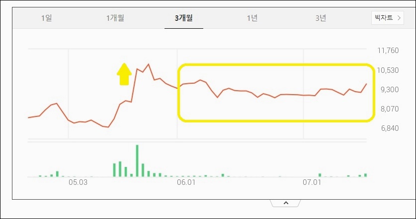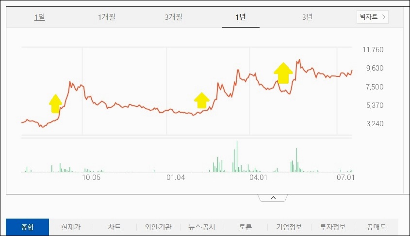 기간별 차트를 확인하시어 투자하는 방법 또한 있을 것 같습니다.