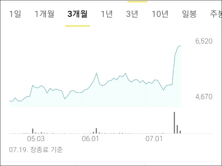 3개월 차트로 볼 때의 세명전기 주가 변동입니다.