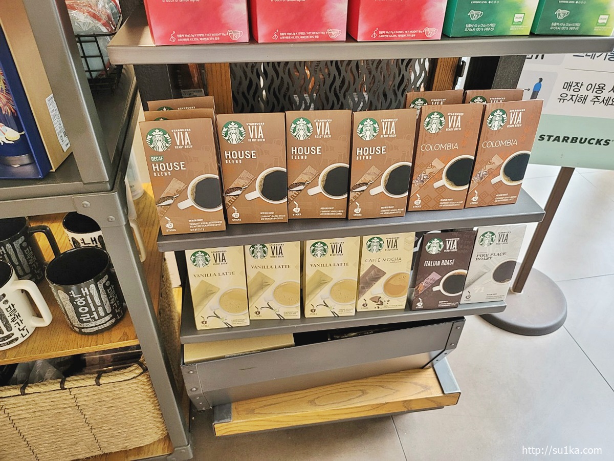 스타벅스는 입구에 MD상품과 함께 찾기 쉽게 원두가 진열되어 있습니다.
