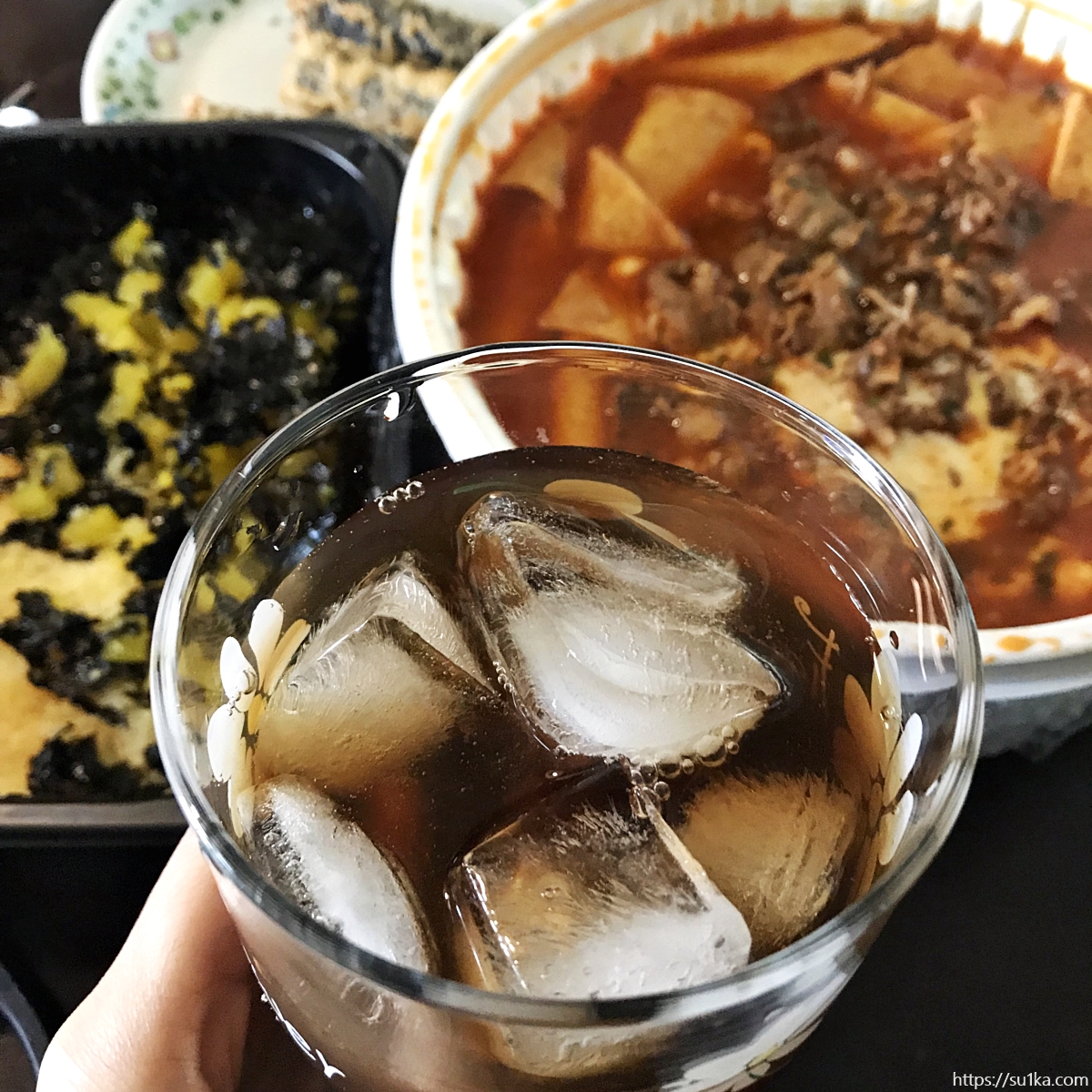 떡볶이에 먹을 차례~~~ 햄버거에도 커피를 곁들여 먹는 저인데 역시 이 호화로운 상에도 커피가 참 잘 어울렸다고 합니다. 근사한 맛이더라구요~ 사 먹는거랑 비교해 봤을 때 거의 차이가 나지 않네요.
