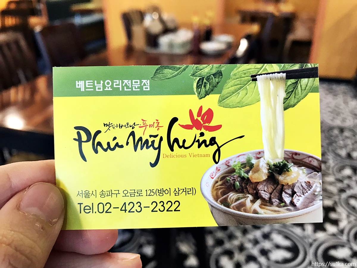 살짝 토막 상식이지만, 베트남에 한 번 가 보신 분들은 푸미흥이 무슨 지명인지 아실거에요...베트남의 LA, 즉 한인 타운 이름이죠. 지인 중에 베트남 부자가 있는데 그 분도 사업차 이 쪽에 자주 들르신답니다. 여하튼, 쌀국수 가게 이름이 푸미흥이라니 너무 재밌었어요...인터넷에 여기가 무슨뜻인지 모르시는 분들은 푸미홍이라고 오타도 내셨던데요, 정확히는 홍이 아니라 끝자가 흥입니다. 즉, 푸미흥은 베트남 호치민에 있는 도시이름이라는 거 아시길 바라며 이 먹방 리뷰를 읽어주세요.