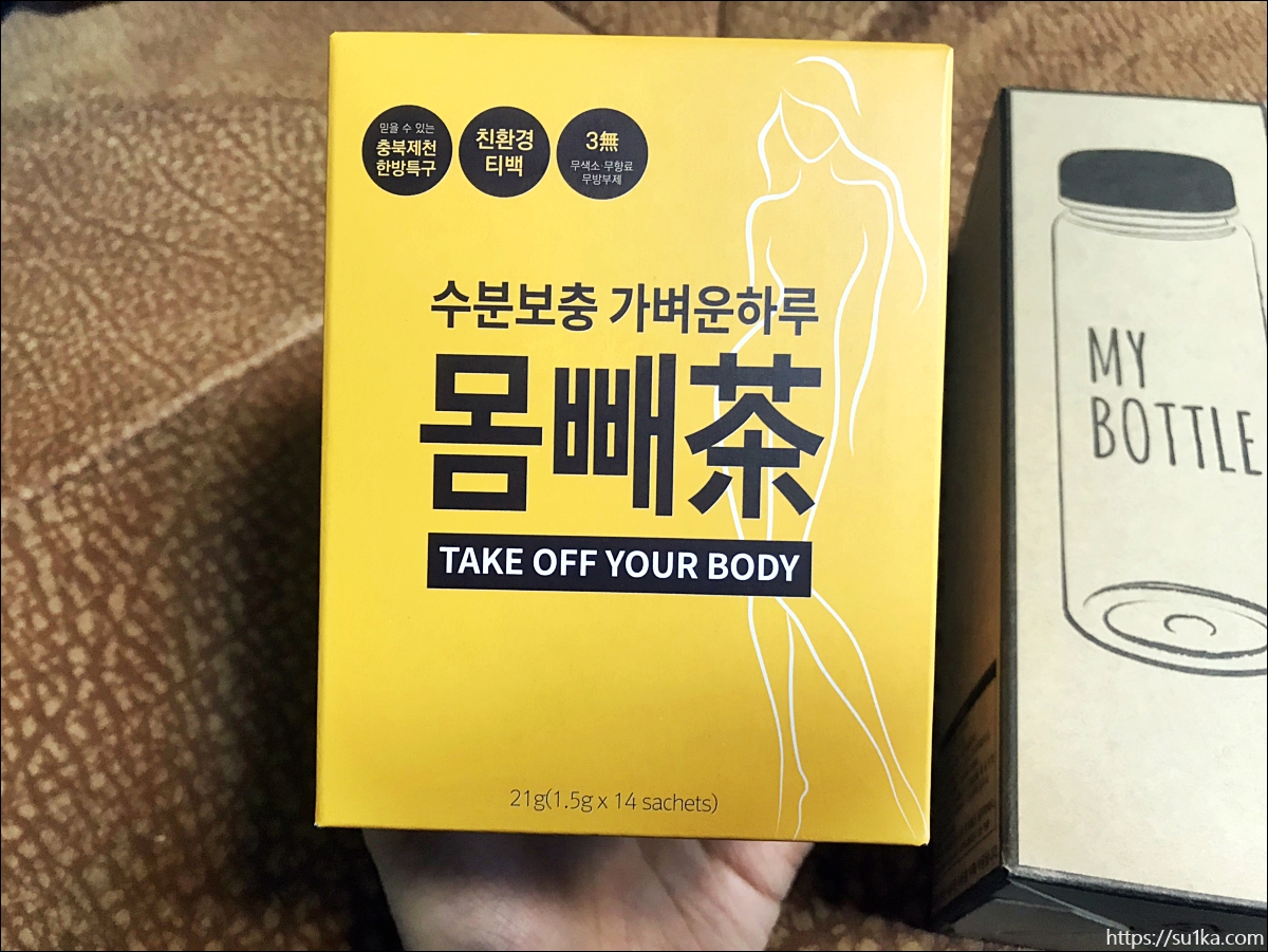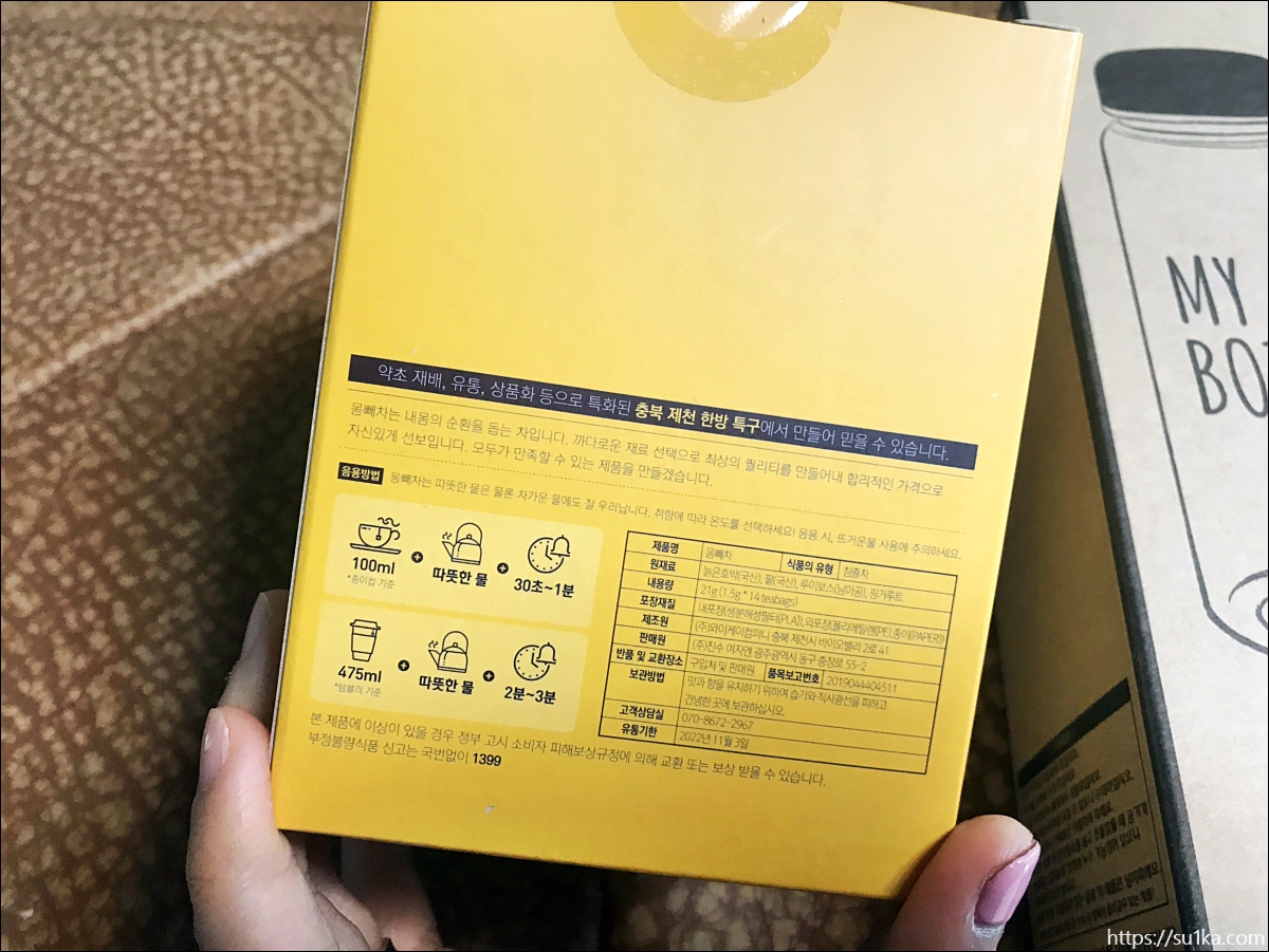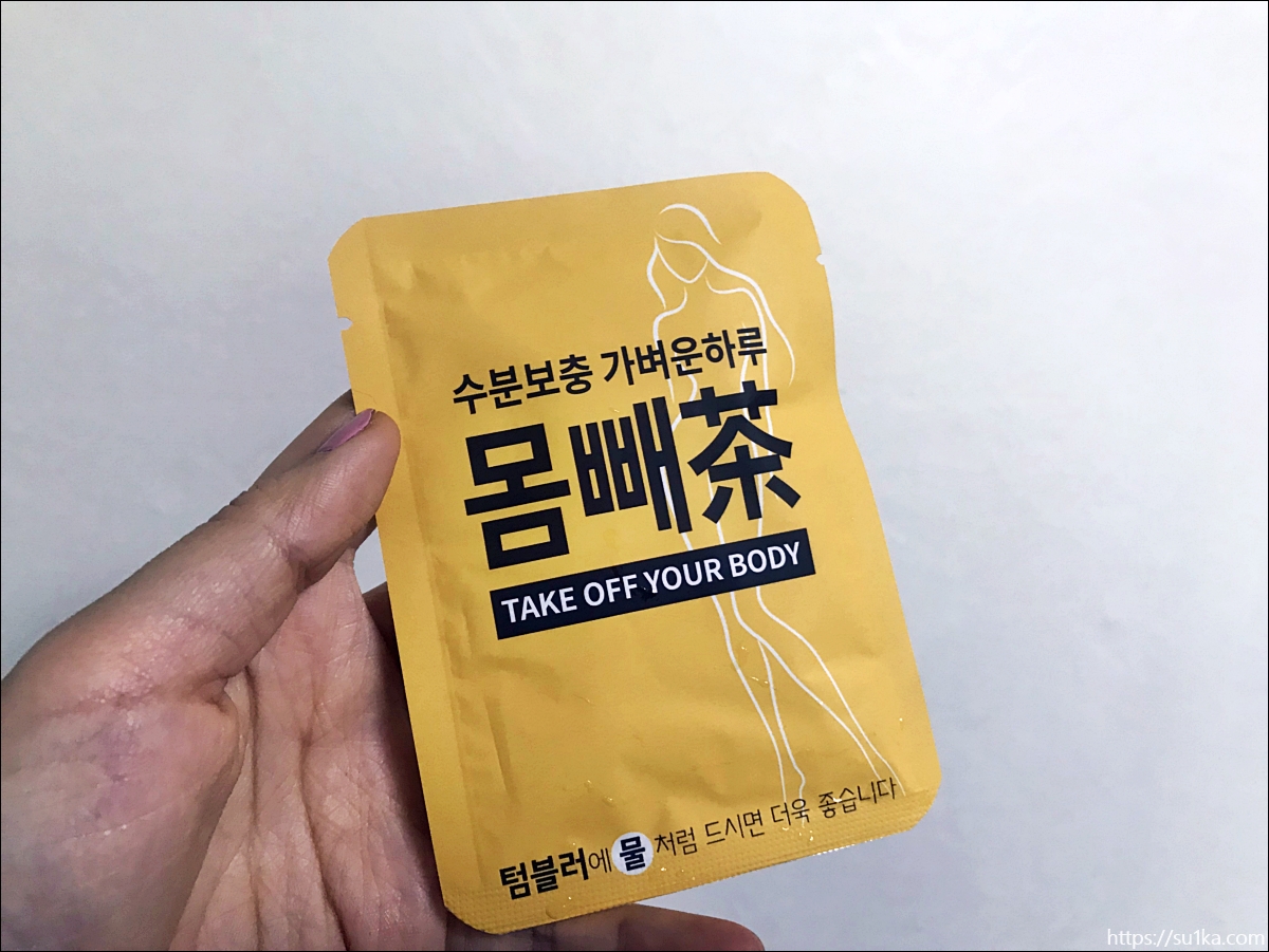붓기차 제품이름은 몸빼차입니다. 옛날 할머니들이 입는 그 몸빼바지도 생각나고, 무언가 몸에서 빠져나가는 그런 감각적인 느낌도 들더라구요.