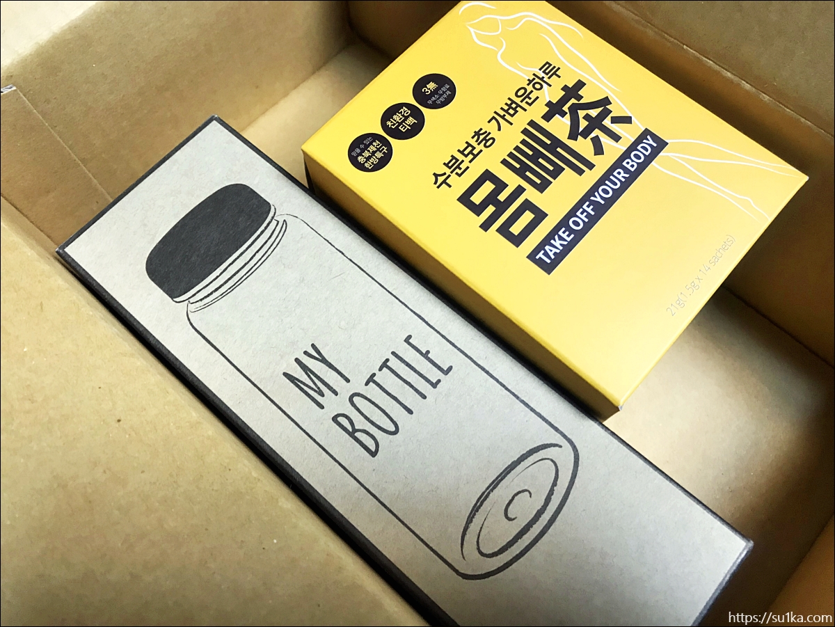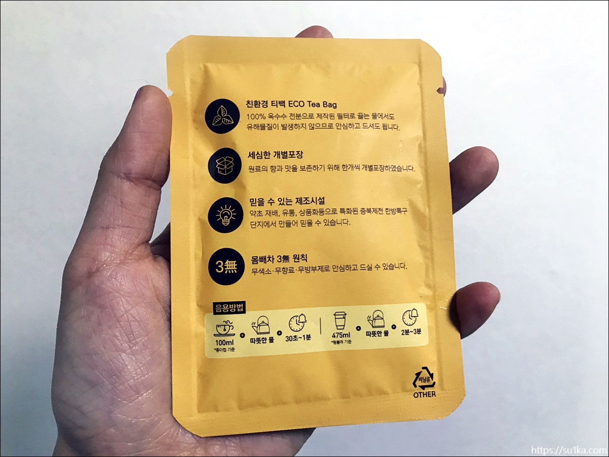 친환경 티백에 보틀이랑 SET로해서, 자주 먹어주면 좋을거 같아서 선택 해 본 것이에요. 특히 "수분보충 가벼운하루"라는 문구도 너무 인상깊더라구요.