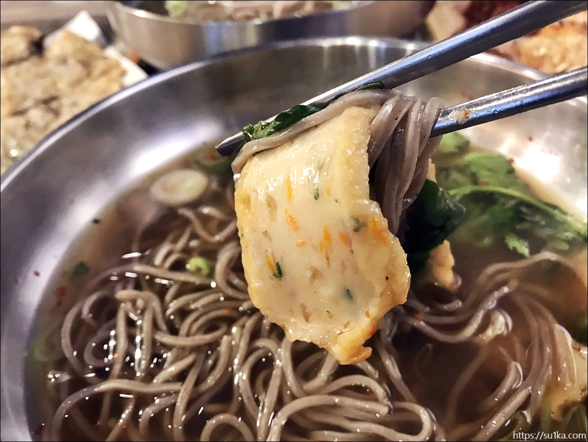 차이점이라면 온메밀에는 일본 시치미 비슷한 가루가 뿌려지며, 오뎅(어묵)이 들어있는 것을 확인할 수 있습니다. 술안주로도 너무 좋을거 같아요.