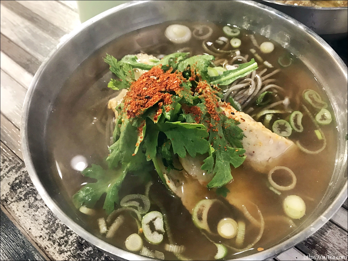 툭툭 끊어지는 메밀 면발은 차갑게 먹건 뜨겁게 먹건 최고인거 같습니다.