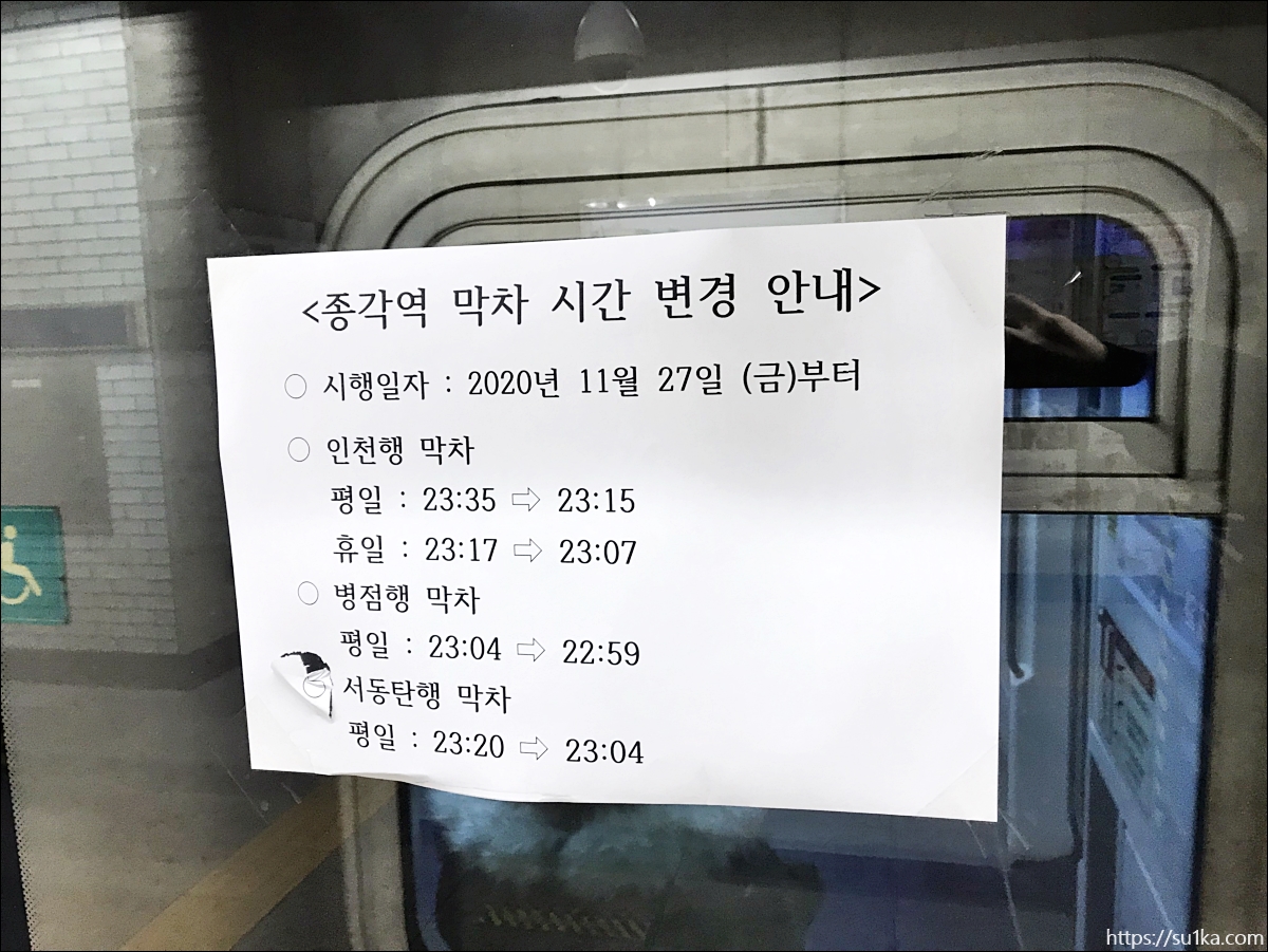 1호선 종각역 지하철 막차 시간 변경 2020년 11월 27일 (금) 부터 본문