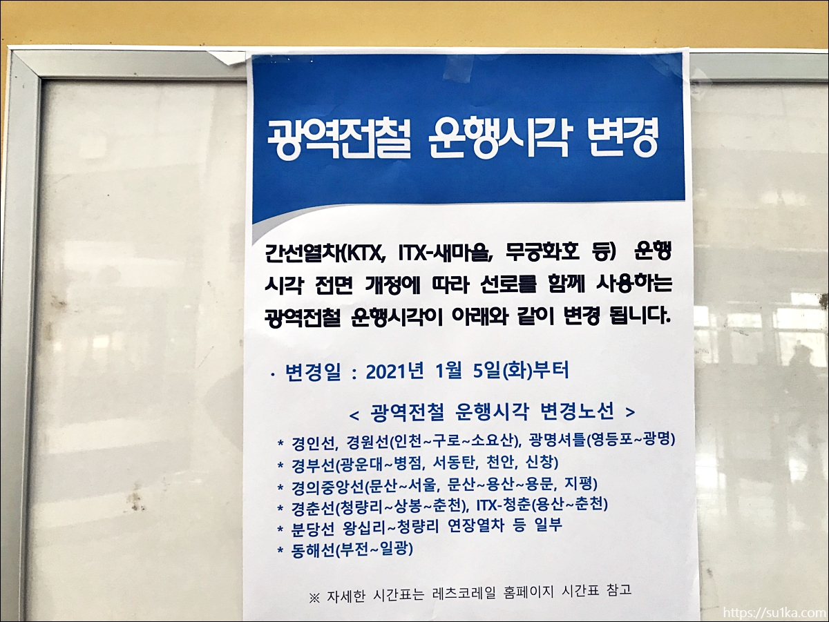 2021녀 1월 5일 화요일부터 광역전철 운행시각이 변경되는 노선은