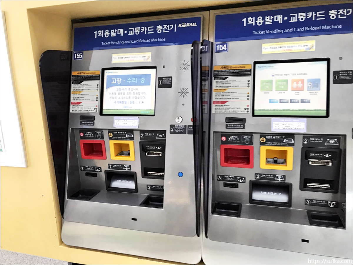 내부 키오스크에서는 1회용 교통카드 충전기및 발매도 가능합니다.