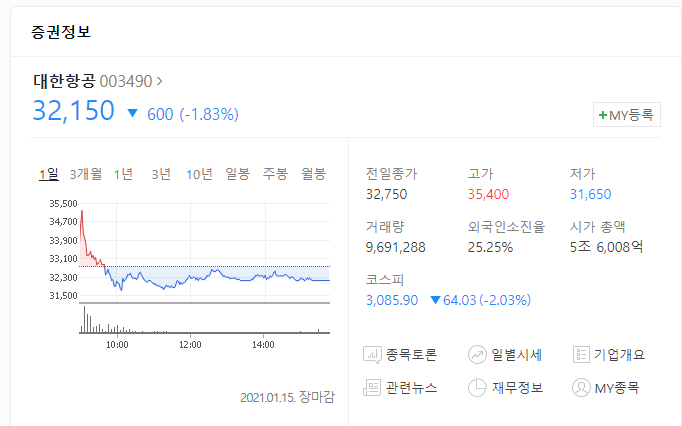 대한항공 본주가 32,150원인것에 비하면 대략 만원정도나 더 비싼데요. 덜 비싼것에 몰리는 투자심리 때문에 그럴수도 있다고 해석해 볼 수도 있겠습니다.