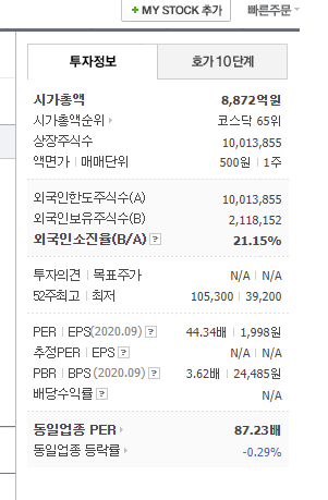 시가총액순위가 코스닥에서 65위나 차지하고 있기에