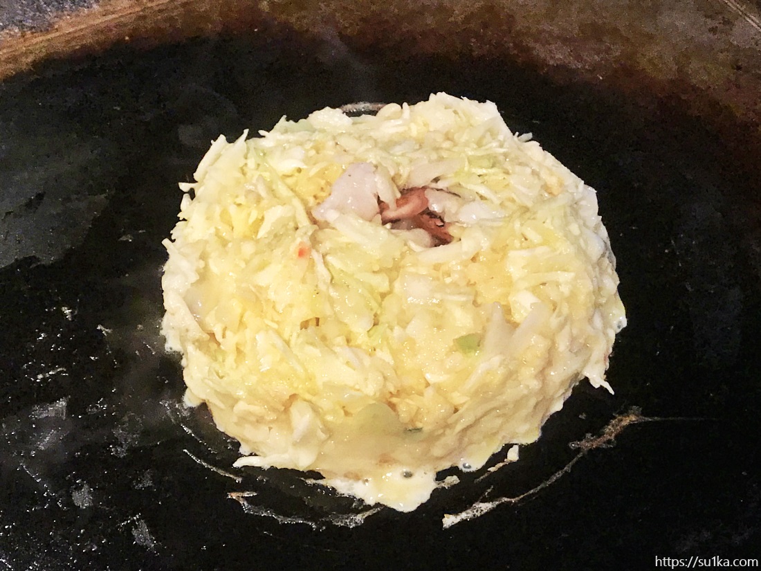 오코노미야키 속재료인데요 집에서 만들면 철판이 없어서 이맛이 안나죠~