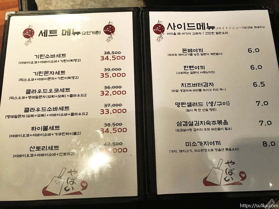 캬! 야바이는 신촌 오코노미야끼 전문점으로 역시 간판메뉴가 이정도 클라스 입니다
