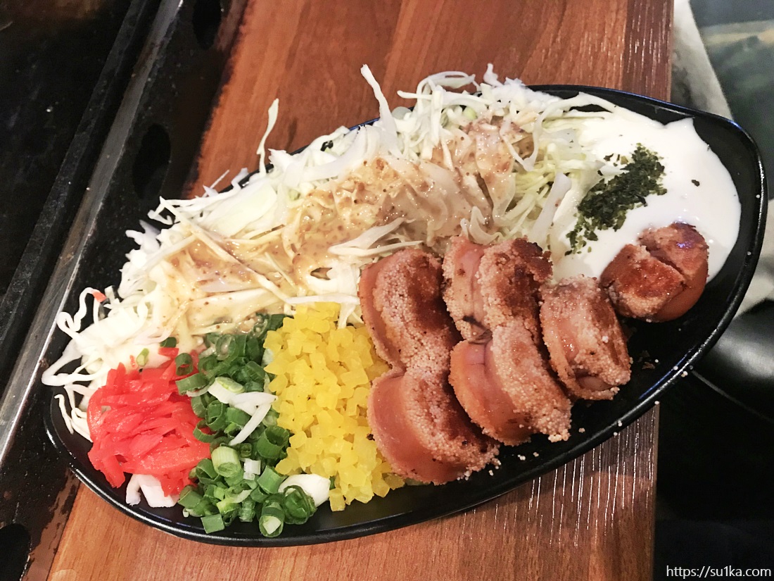 오코노미야키는 속재료 맛이 맛을 결정하는데요 정말 화려하게 담아주셨어요.