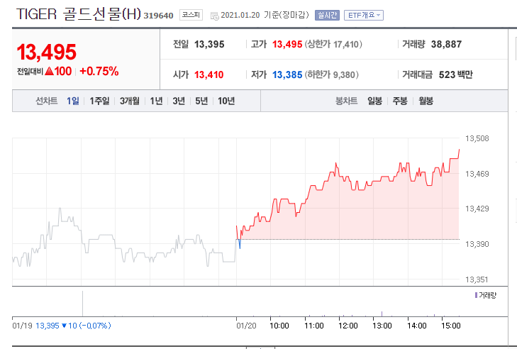 예시로 보여드리는 다른상품인 TIGER 골드선물 (H) 입니다.
