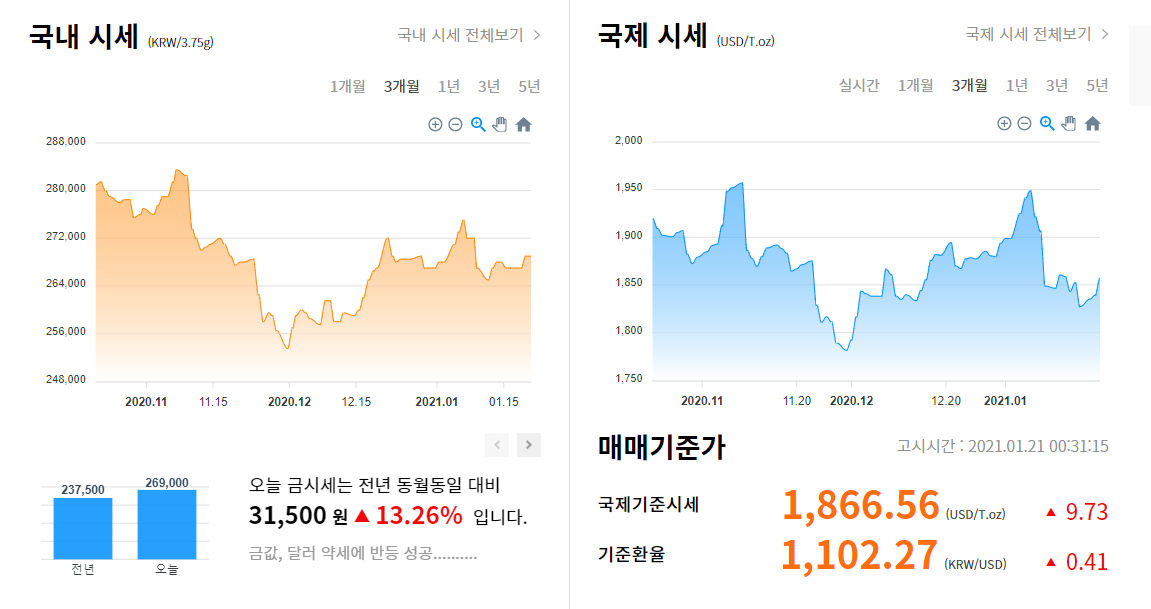 이곳에서 매일 금가격의 국내시세와 국제시세가 확인이 가능하더라고요.