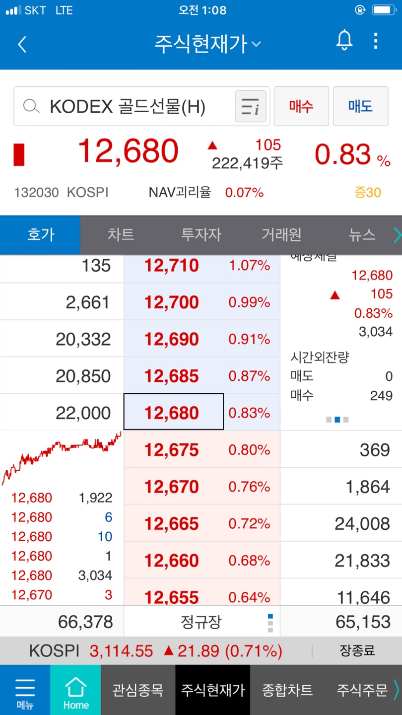 KODEX 골드선물로 들어가서 호가창이 나왔습니다.