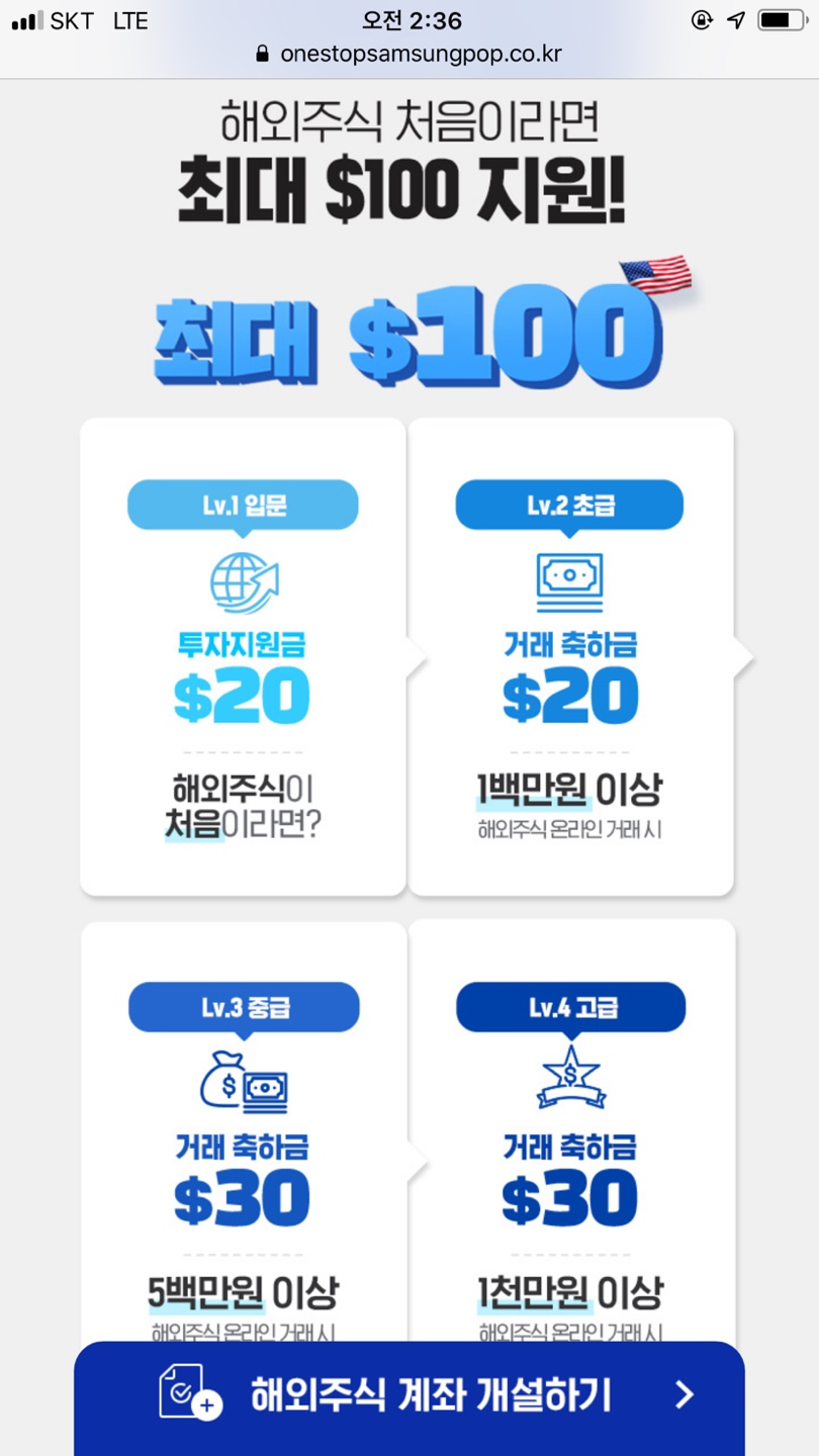 삼성증권 해외주식 머니 최대 100달러 받자