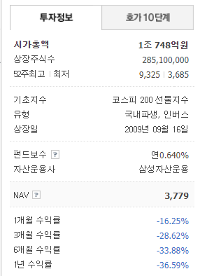 2009년 상장했구요. 자산운용사는 삼성자산운용입니다.