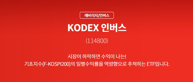 제가 오늘 보여드리는 KODEX 인버스 상품은 주가하락에 베팅하는 상품입니다.