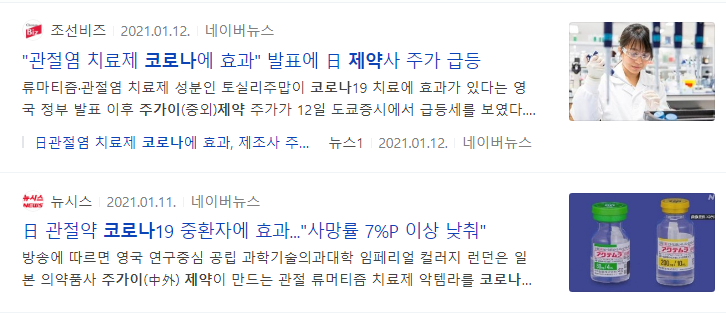 관절약이 코로나에 효과 있다는 뉴스 때문에 그렇습니다.