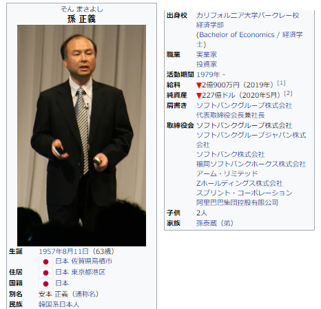 재일교포 출신인 것만으로도 차별을 많이 받는 일본땅에서 손정의씨는 정말 대단하다고 할수 있습니다.