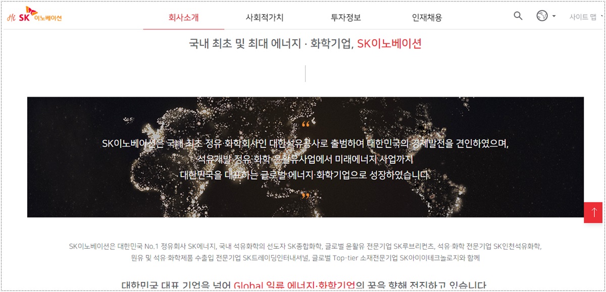 SK 이노베이션 홈페이지에서는 국내 최초 및 최대 에너지/화학기업임을 명시하고 있었습니다